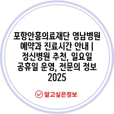 포항안흥의료재단 영남병원 예약과 진료시간 공지 | 정신병원 추천, 일요일 공휴일 운영, 전연락 정보 2025 에 대해 자주 묻는 질문 TOP 5