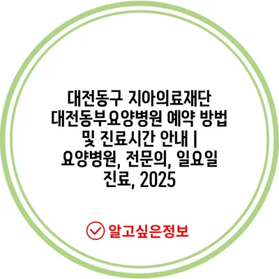 ✅ 대전동부요양병원의 진료 시간과 예약 방법을 확인해 보세요.