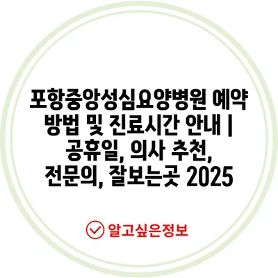 포항중앙성심요양병원 예약 방법 및 진료시간 공지 | 공휴일, 의사 추천, 전연락, 잘보는곳 2025