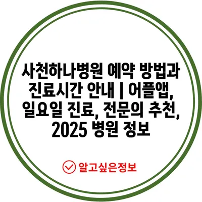 사천하나병원 예약 방법과 진료시간 공지 | 어플앱, 일요일 진료, 전연락 추천, 2025 병원 정보 에 대해 자주 묻는 질문 TOP 5