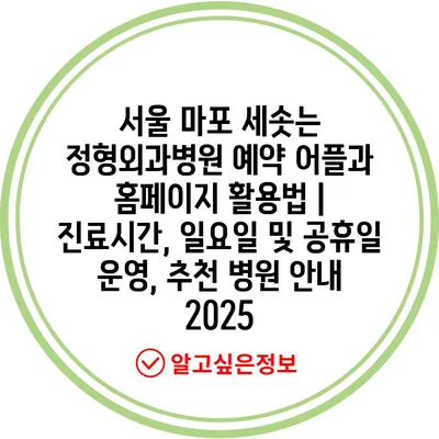 서울 마포 세솟는 정형외과병원 예약 어플과 홈페이지 활용법 | 진료시간, 일요일 및 공휴일 운영, 추천 병원 공지 2025 에 대해 자주 묻는 질문 TOP 5