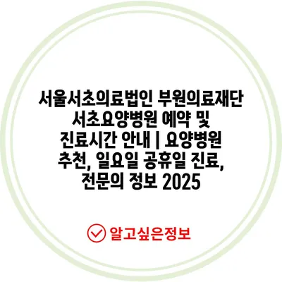 서울서초의료법인 부원의료재단 서초요양병원 예약 및 진료시간 공지 | 요양병원 추천, 일요일 공휴일 진료, 전연락 정보 2025 에 대해 자주 묻는 질문 TOP 5