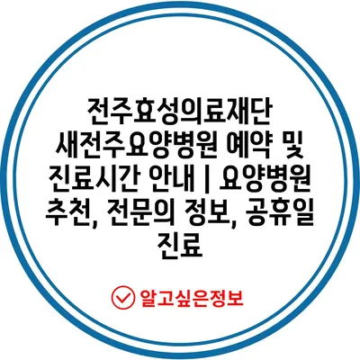 전주효성의료재단 새전주요양병원 예약 및 진료시간 공지 | 요양병원 추천, 전연락 정보, 공휴일 진료에 대해 자주 묻는 질문 TOP 5