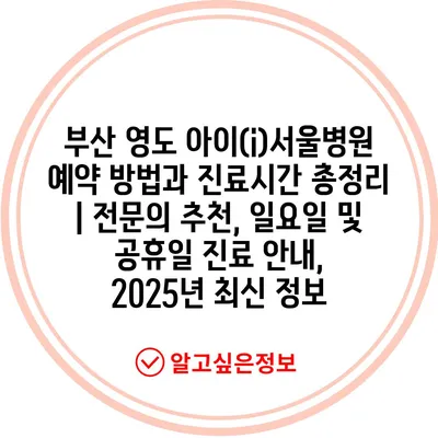 부산 영도 아이(i)서울병원 예약 방법과 진료시간 총정리 | 전연락 추천, 일요일 및 공휴일 진료 공지, 2025년 최신 정보 에 대해 자주 묻는 질문 TOP 5