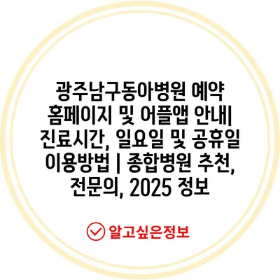 광주남구동아병원 예약 홈페이지 및 어플앱 공지| 진료시간, 일요일 및 공휴일 이용방법 | 종합병원 추천, 전연락, 2025 정보 에 대해 자주 묻는 질문 TOP 5