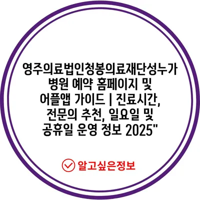영주의료법인청봉의료재단성누가병원 예약 홈페이지 및 어플앱 설명서 | 진료시간, 전연락 추천, 일요일 및 공휴일 운영 정보 2025