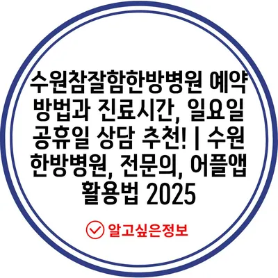 수원참잘함한방병원 예약 방법과 진료시간, 일요일 공휴일 상담 추천! | 수원 한방병원, 전연락, 어플앱 활용법 2025 에 대해 자주 묻는 질문 TOP 5