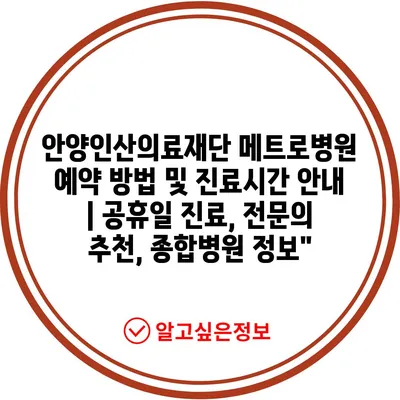 안양인산의료재단 메트로병원 예약 방법 및 진료시간 공지 | 공휴일 진료, 전연락 추천, 종합병원 정보