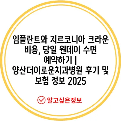 임플란트와 지르코니아 크라운 비용, 당일 원데이 수면 예약하기 | 양산더이로운치과병원 후기 및 보험 정보 2025에 대해 알아보겠습니다.