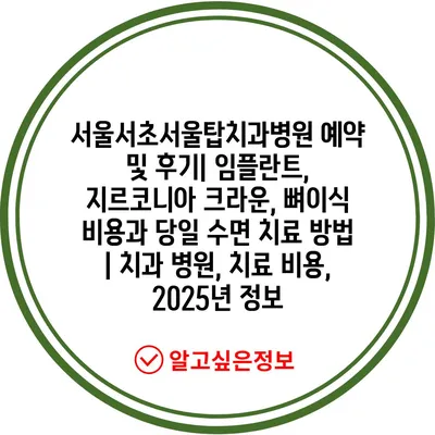 서울서초서울탑치과병원 예약 및 후기| 임플란트, 지르코니아 크라운, 뼈이식 비용과 당일 수면 치료 방법 | 치과 병원, 치료 비용, 2025년 정보 에 대해 자주 묻는 질문 TOP 5