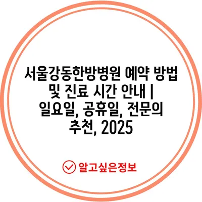 ✅ 서울강동한방병원의 예약 방법과 진료 시간을 알아보세요.