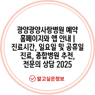 광양광양사랑병원 예약 홈페이지와 앱 공지 | 진료시간, 일요일 및 공휴일 진료, 종합병원 추천, 전연락 상담 2025에 대해 소개합니다.
