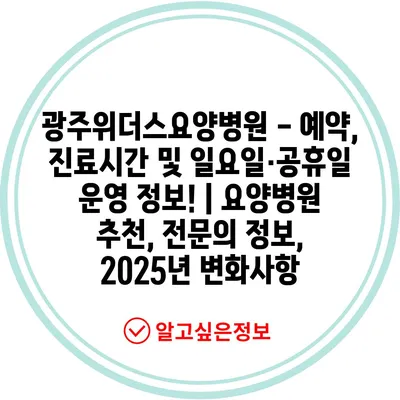 광주위더스요양병원 – 예약, 진료시간 및 일요일·공휴일 운영 정보! | 요양병원 추천, 전연락 정보, 2025년 변화사항