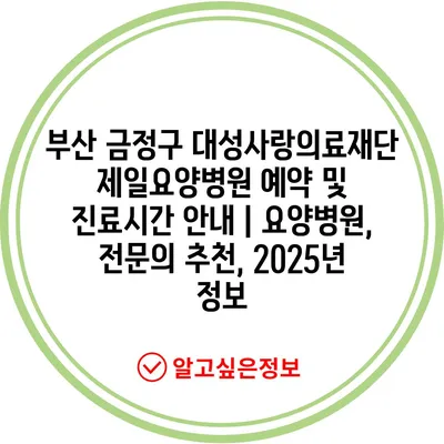 부산 금정구 대성사랑의료재단 제일요양병원 예약 및 진료시간 공지 | 요양병원, 전연락 추천, 2025년 정보 에 대해 자주 묻는 질문 TOP 5