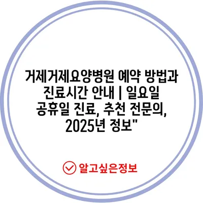 거제거제요양병원 예약 방법과 진료시간 공지 | 일요일 공휴일 진료, 추천 전연락, 2025년 정보” 에 대해 자주 묻는 질문 TOP 5