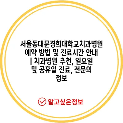 ✅ 서울동대문경희대학교치과병원 예약 방법을 자세히 알아보세요.