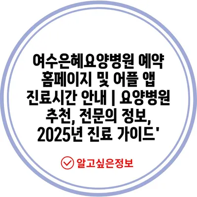 ✅ 여수은혜요양병원의 진료시간과 예약 방법을 자세히 알아보세요.