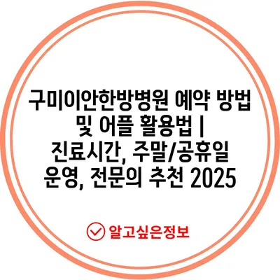 구미이안한방병원 예약 방법 및 어플 활용법 | 진료시간, 주말/공휴일 운영, 전연락 추천 2025 에 대해 자주 묻는 질문 TOP 5