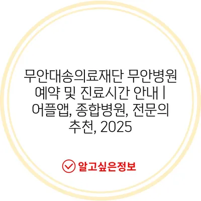 무안대송의료재단 무안병원 예약 및 진료시간 공지 | 어플앱, 종합병원, 전연락 추천, 2025 에 대해 자주 묻는 질문 TOP 5