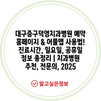 ✅ 대구중구덕영치과병원의 예약 방법과 진료시간을 알아보세요!