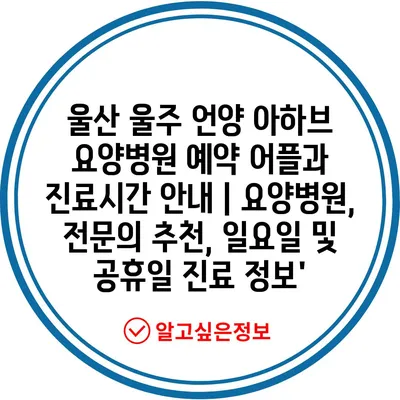 ✅ 울산 울주 언양 아하브 요양병원의 예약 어플과 진료시간을 지금 바로 알아보세요!