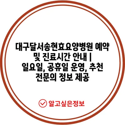 ✅ 대구달서송현효요양병원의 예약과 진료시간을 한눈에 확인하세요!
