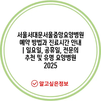 서울서대문서울중앙요양병원 예약 방법과 진료시간 공지 | 일요일, 공휴일, 전연락 추천 및 유명 요양병원 2025 에 대해 자주 묻는 질문 TOP 5