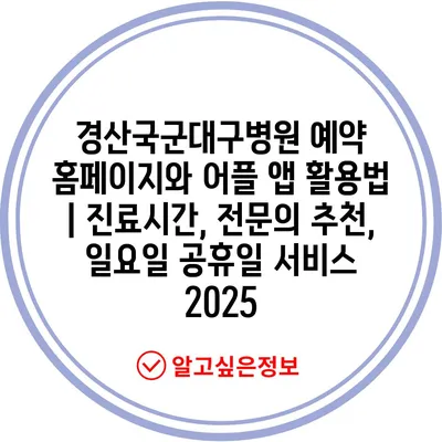 경산국군대구병원 예약 홈페이지와 어플 앱 활용법 | 진료시간, 전연락 추천, 일요일 공휴일 서비스 2025