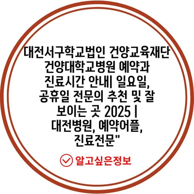 대전서구학교법인 건양교육재단 건양대학교병원 예약과 진료시간 공지| 일요일, 공휴일 전연락 추천 및 잘 보이는 곳 2025 | 대전병원, 예약어플, 진료전문” 에 대해 자주 묻는 질문 TOP 5