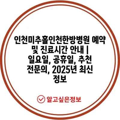 인천미추홀인천한방병원 예약 및 진료시간 공지 | 일요일, 공휴일, 추천 전연락, 2025년 최신 정보 에 대해 자주 묻는 질문 TOP 5