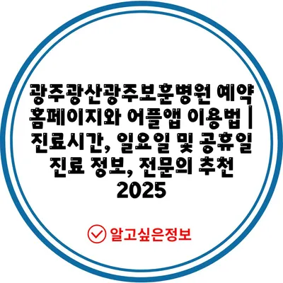 광주광산광주보훈병원 예약 홈페이지와 어플앱 이용법 | 진료시간, 일요일 및 공휴일 진료 정보, 전연락 추천 2025에 대해 자주 묻는 질문 TOP 5