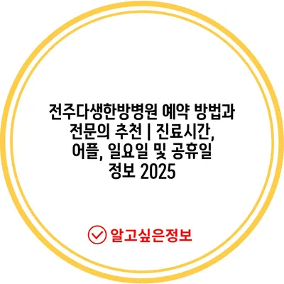 전주다생한방병원 예약 방법과 전문의 추천 | 진료시간, 어플, 일요일 및 공휴일 정보 2025