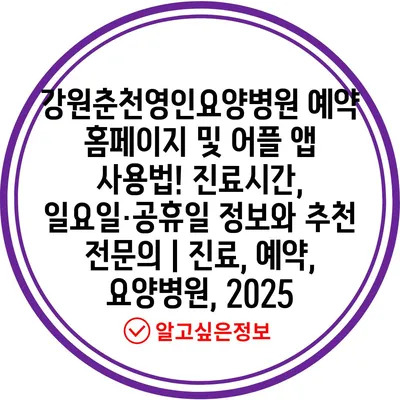 강원춘천영인요양병원 예약 홈페이지 및 어플 앱 사용법! 진료시간, 일요일·공휴일 정보와 추천 전연락 | 진료, 예약, 요양병원, 2025 에 대해 자주 묻는 질문 TOP 5