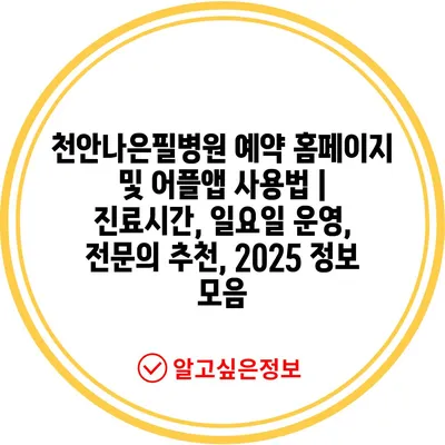 천안나은필병원 예약 홈페이지 및 어플앱 사용법 | 진료시간, 일요일 운영, 전연락 추천, 2025 정보 모음에 대해 자주 묻는 질문 TOP 5