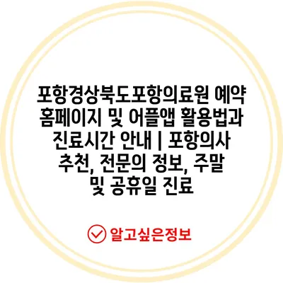 ✅ 포항의 의료원 예약 방법을 쉽게 알아보세요.
