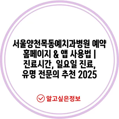 서울양천목동예치과병원 예약 홈페이지 & 앱 사용법 | 진료시간, 일요일 진료, 유명 전연락 추천 2025에 대해 자주 묻는 질문 TOP 5