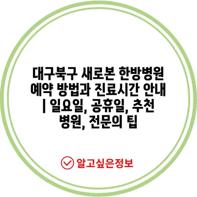 대구북구 새로본 한방병원 예약 방법과 진료시간 공지 | 일요일, 공휴일, 추천 병원, 전연락 팁 에 대해 자주 묻는 질문 TOP 5