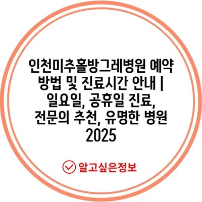 인천미추홀방그레병원 예약 방법 및 진료시간 공지 | 일요일, 공휴일 진료, 전연락 추천, 유명한 병원 2025 에 대해 자주 묻는 질문 TOP 5