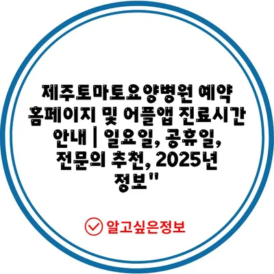 제주토마토요양병원 예약 홈페이지 및 어플앱 진료시간 공지 | 일요일, 공휴일, 전연락 추천, 2025년 정보