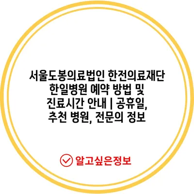 서울도봉의료법인 한전의료재단 한일병원 예약 방법 및 진료시간 안내 | 공휴일, 추천 병원, 전문의 정보