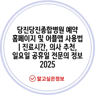 당진당진종합병원 예약 홈페이지 및 어플앱 사용법 | 진료시간, 의사 추천, 일요일 공휴일 전연락 정보 2025에 대해 알아보겠습니다.