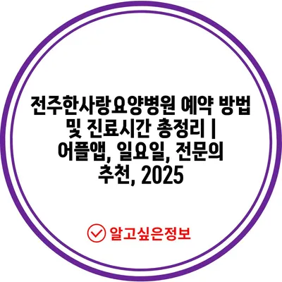 전주한사랑요양병원 예약 방법 및 진료시간 총정리 | 어플앱, 일요일, 전연락 추천, 2025 에 대해 자주 묻는 질문 TOP 5