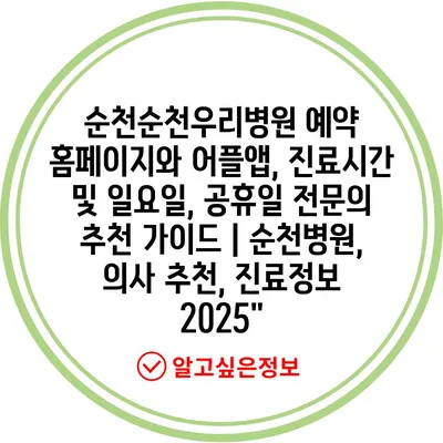 ✅ 순천우리병원 예약 시스템의 모든 정보를 쉽게 알아보세요.