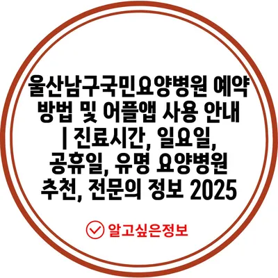 울산남구국민요양병원 예약 방법 및 어플앱 사용 공지 | 진료시간, 일요일, 공휴일, 유명 요양병원 추천, 전연락 정보 2025 에 대해 자주 묻는 질문 TOP 5