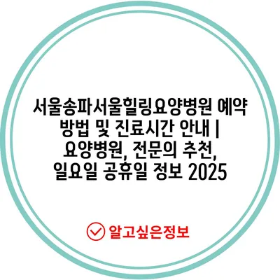 ✅ 서울송파서울힐링요양병원의 예약 방법과 진료 시간을 쉽게 알아보세요.
