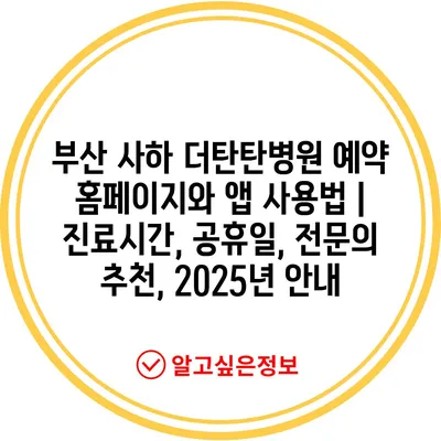 부산 사하 더탄탄병원 예약 홈페이지와 앱 사용법 | 진료시간, 공휴일, 전연락 추천, 2025년 공지 에 대해 자주 묻는 질문 TOP 5