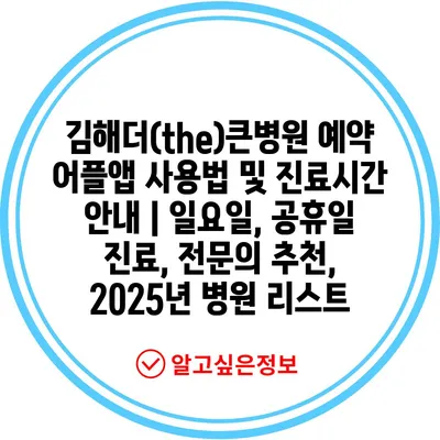 김해더(the)큰병원 예약 어플앱 사용법 및 진료시간 공지 | 일요일, 공휴일 진료, 전연락 추천, 2025년 병원 리스트 에 대해 자주 묻는 질문 TOP 5