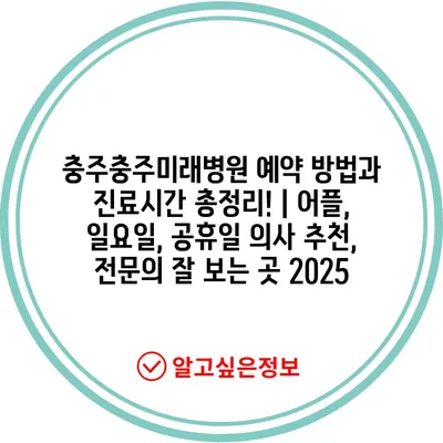 충주충주미래병원 예약 방법과 진료시간 총정리! | 어플, 일요일, 공휴일 의사 추천, 전연락 잘 보는 곳 2025 에 대해 자주 묻는 질문 TOP 5