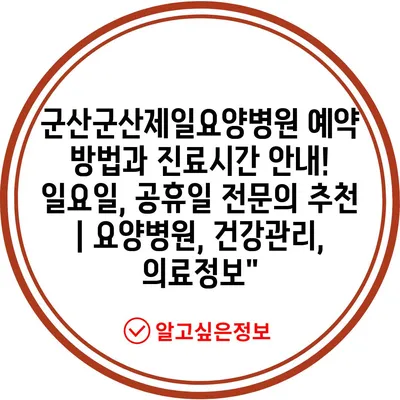 ✅ 군산제일요양병원의 예약 방법과 진료시간을 지금 바로 알아보세요!