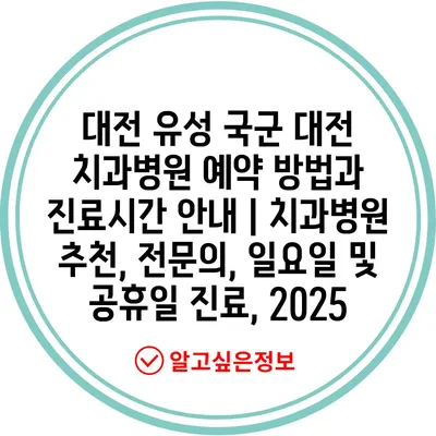 대전 유성 국군 대전 치과병원 예약 방법과 진료시간 공지 | 치과병원 추천, 전연락, 일요일 및 공휴일 진료, 2025 에 대해 자주 묻는 질문 TOP 5